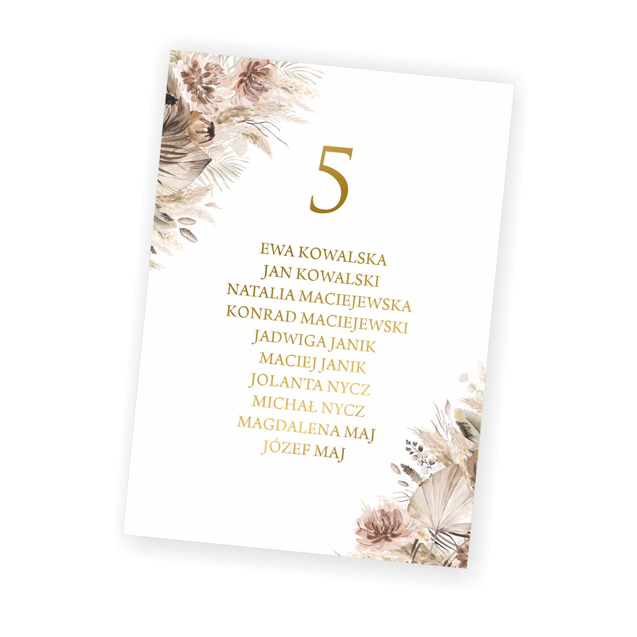 Plan z listą gości może być ustawiony przy wejściu, ułatwiając jednocześnie gościom odnalezienie swojego miejsca na sali. Podążając za Waszymi potrzebami, stworzyliśmy możliwość druku planu na osobnych, mniejszych kartach, w odróżnieniu od dużych plansz jakie również mamy w ofercie. Mniejsze karty sprawdzą się przy ozdobnych ramach / tablicach, jakie często oferują dekoratorzy weselni jako ozdobny element wystroju sali, wejścia.