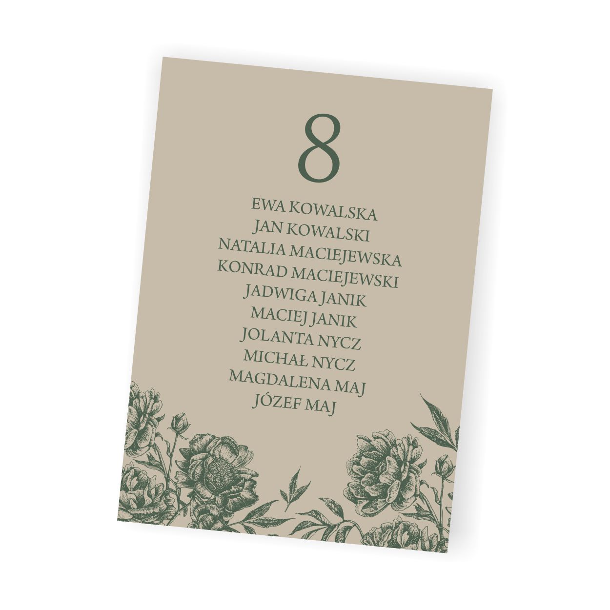 Plan z listą gości może być ustawiony przy wejściu, ułatwiając jednocześnie gościom odnalezienie swojego miejsca na sali. Podążając za Waszymi potrzebami, stworzyliśmy możliwość druku planu na osobnych, mniejszych kartach, w odróżnieniu od dużych plansz jakie również mamy w ofercie. Mniejsze karty sprawdzą się przy ozdobnych ramach, jakie często oferują dekoratorzy weselni jako ozdobny element wystroju sali, wejścia.