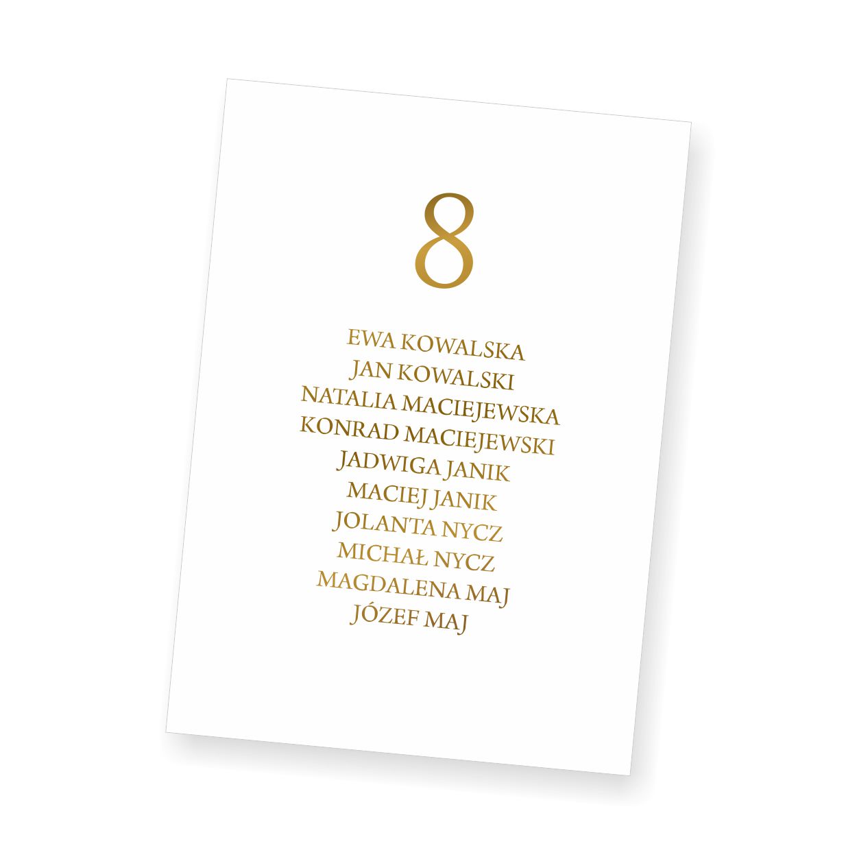 Plan z listą gości może być ustawiony przy wejściu, ułatwiając jednocześnie gościom odnalezienie swojego miejsca na sali. Podążając za Waszymi potrzebami, stworzyliśmy możliwość druku planu na osobnych, mniejszych kartach, w odróżnieniu od dużych plansz jakie również mamy w ofercie. Mniejsze karty sprawdzą się przy ozdobnych ramach / tablicach, jakie często oferują dekoratorzy weselni jako ozdobny element wystroju sali, wejścia.