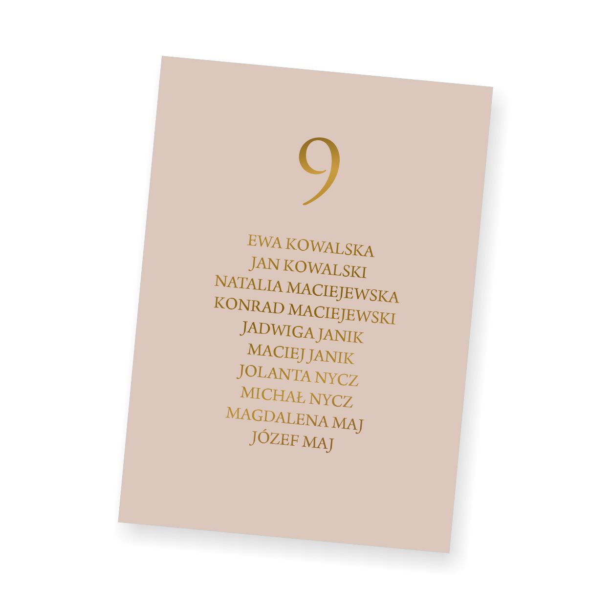 Plan z listą gości może być ustawiony przy wejściu, ułatwiając jednocześnie gościom odnalezienie swojego miejsca na sali. Podążając za Waszymi potrzebami, stworzyliśmy możliwość druku planu na osobnych, mniejszych kartach, w odróżnieniu od dużych plansz jakie również mamy w ofercie. Mniejsze karty sprawdzą się przy ozdobnych ramach / tablicach, jakie często oferują dekoratorzy weselni jako ozdobny element wystroju sali, wejścia.