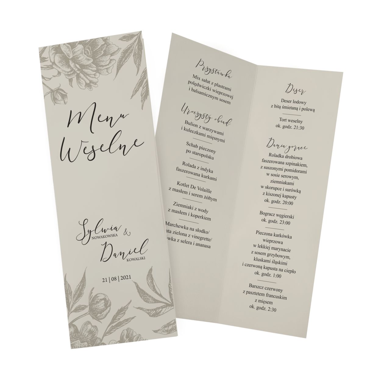 - personalizację według przesłanej listy imion nowożeńców, daty ślubu oraz serwowanych dań