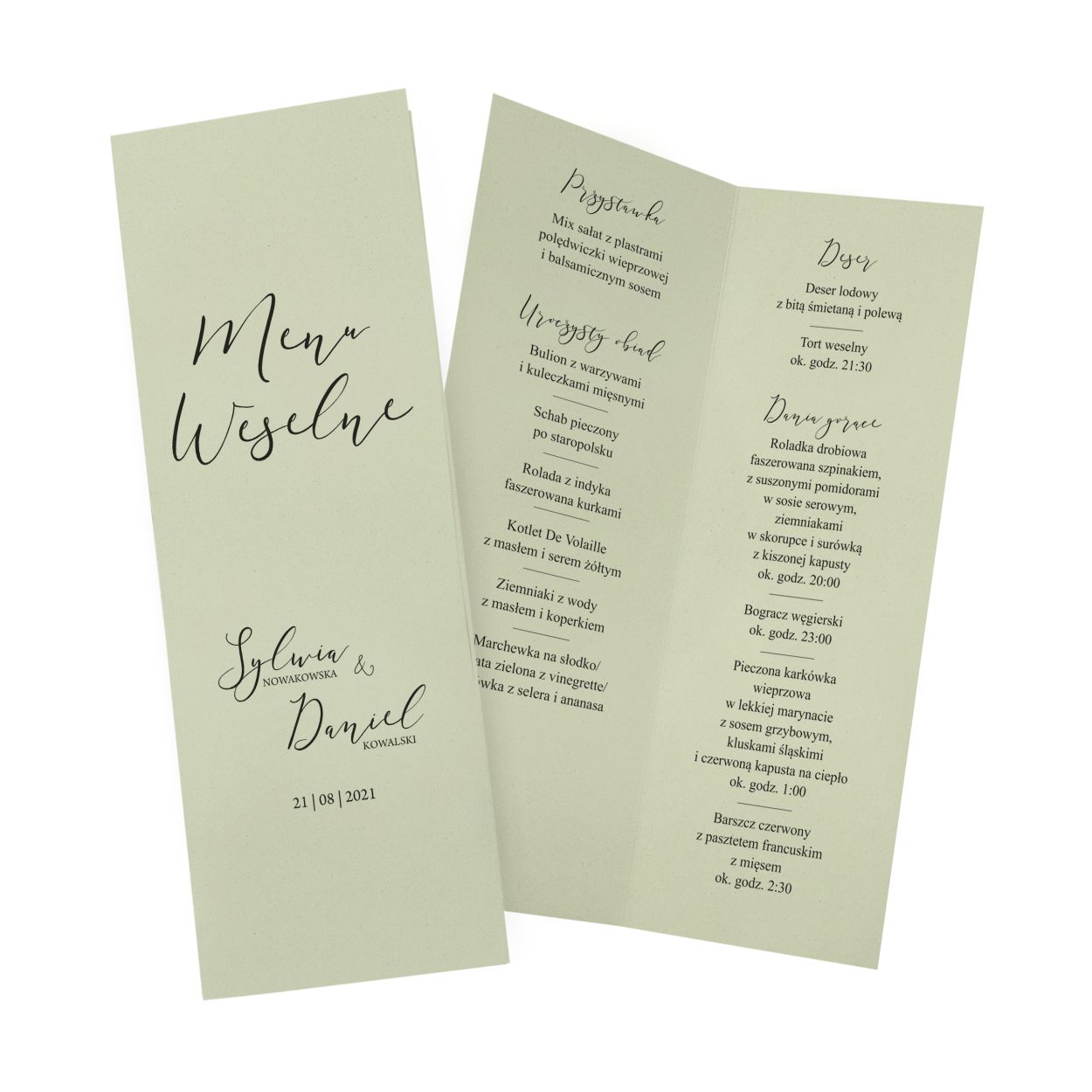 - personalizację według przesłanej listy imion nowożeńców, daty ślubu oraz serwowanych dań