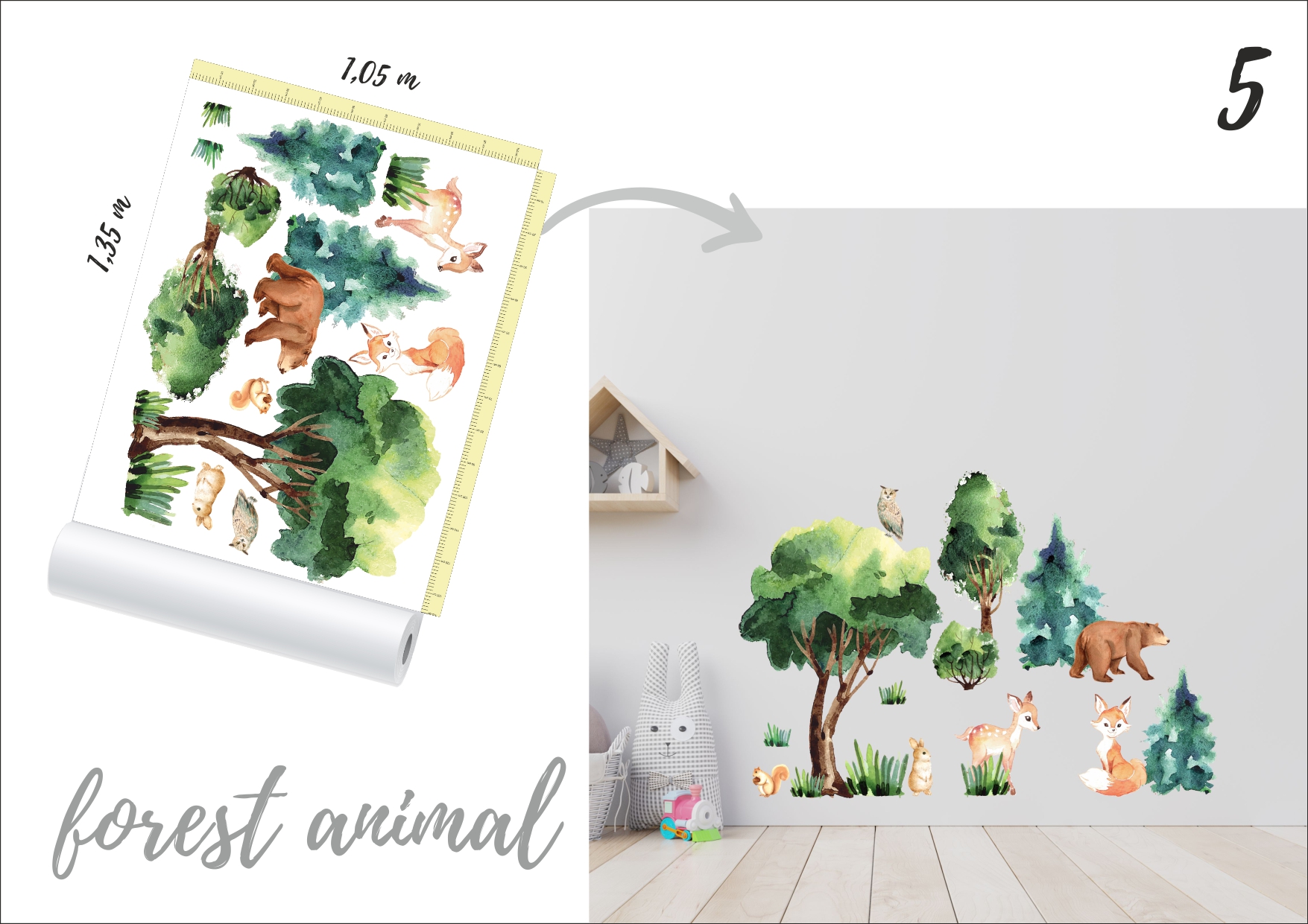 Wymiary poszczególnych elementów można sprawdzić na umieszczonej miarce. Rozłożenie na ścianie jest dowolne.