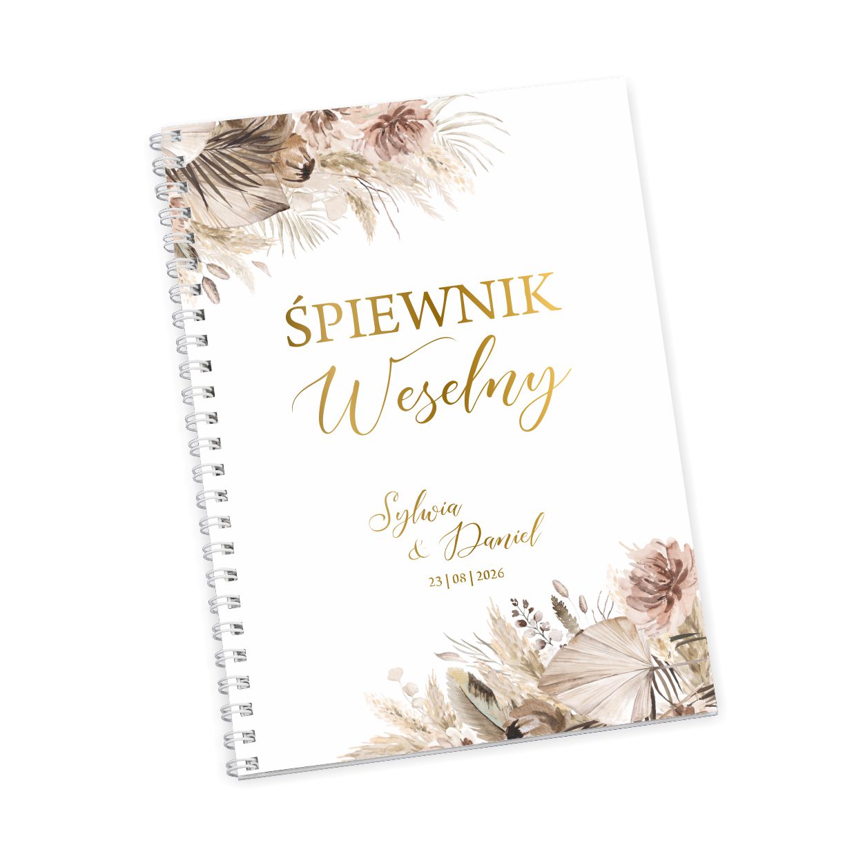 - śpiewnik w formacie A5 210×148 mm trwale połączony z okładką metalową spiralą