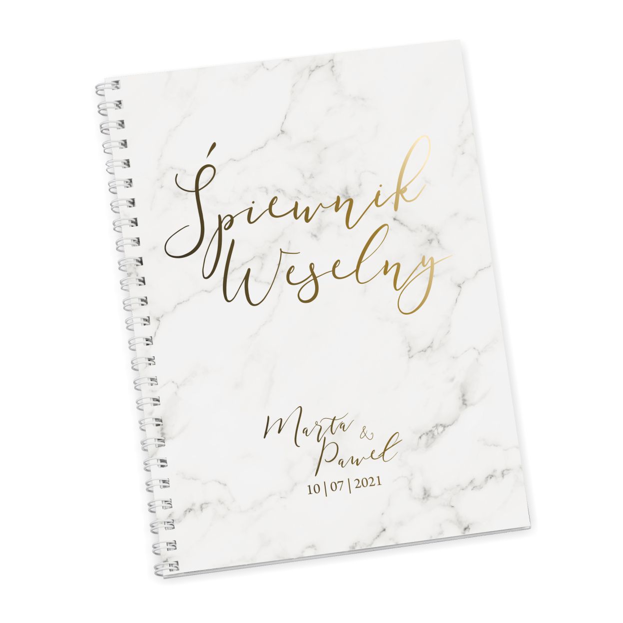 - śpiewnik w formacie A5 210×148 mm trwale połączony z okładką białą metalową spiralą