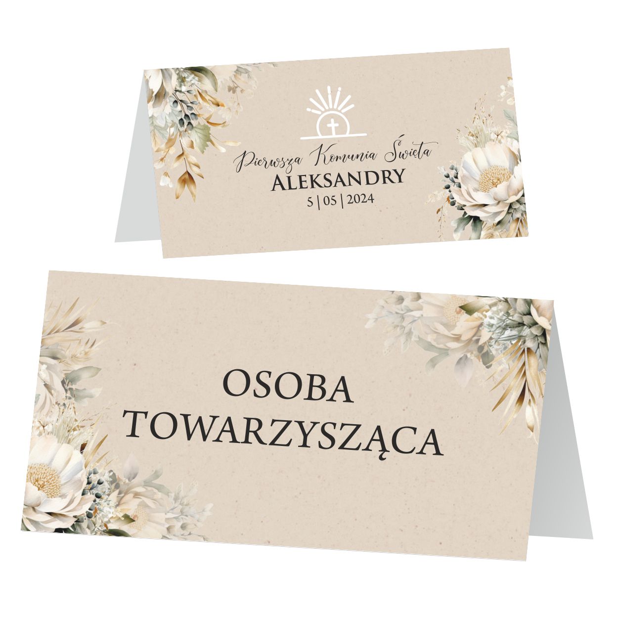 Eleganckie, personalizowane winietki na stoły z delikatnym, naturalnym wzorem i w najmodniejszej kolorystyce.