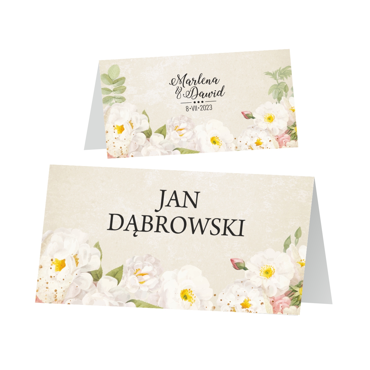 Eleganckie, personalizowane winietki z delikatnym, naturalnym wzorem i w najmodniejszej kolorystyce to nie tylko praktyczny element organizacyjny, ale też stylowa ozdoba Twojego weselnego stołu. 🌿💛