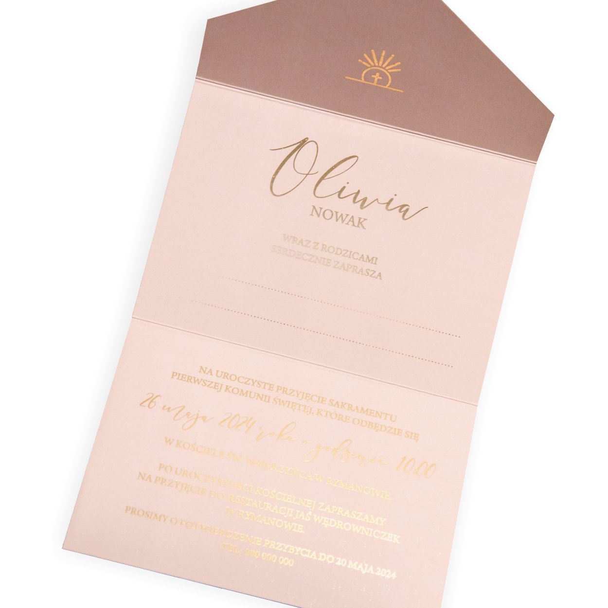 📜 Zaproszenie – wymiary 29×15 cm (rozłożone), składane do 10×15 cm