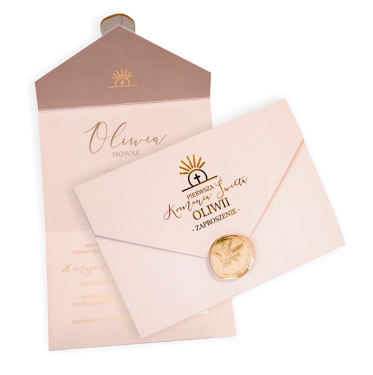 Pierwsza Komunia Święta to wyjątkowy moment w życiu dziecka i całej rodziny. Nasze zaproszenia komunijne to połączenie delikatnych, pastelowych kolorów, subtelnej elegancji i wyjątkowej złotej typografii, które podkreślają uroczysty charakter tego dnia.