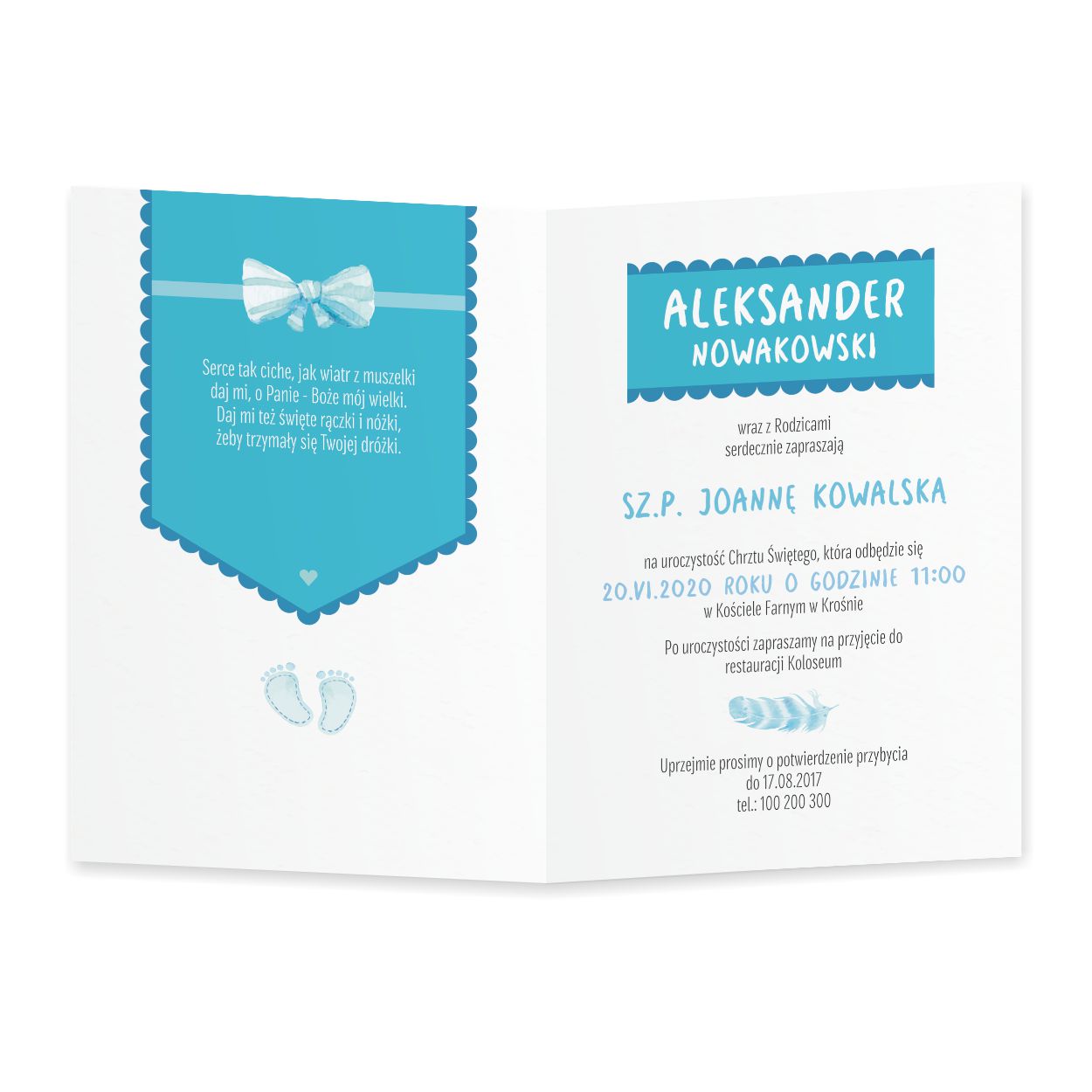 Zaproszenie na chrzest ZC15 + koperta gratis