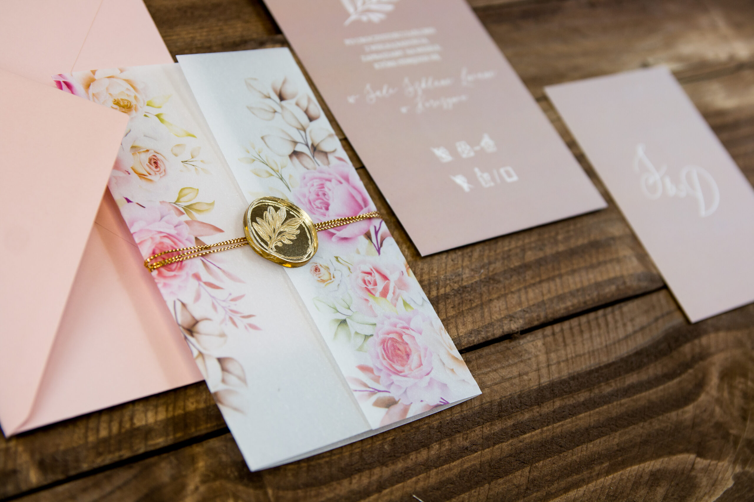 💛 Złoty lak oraz złoty sznurek – piękne detale ozdabiające kalkową okładkę, które nadają zaproszeniom wyjątkowego charakteru.