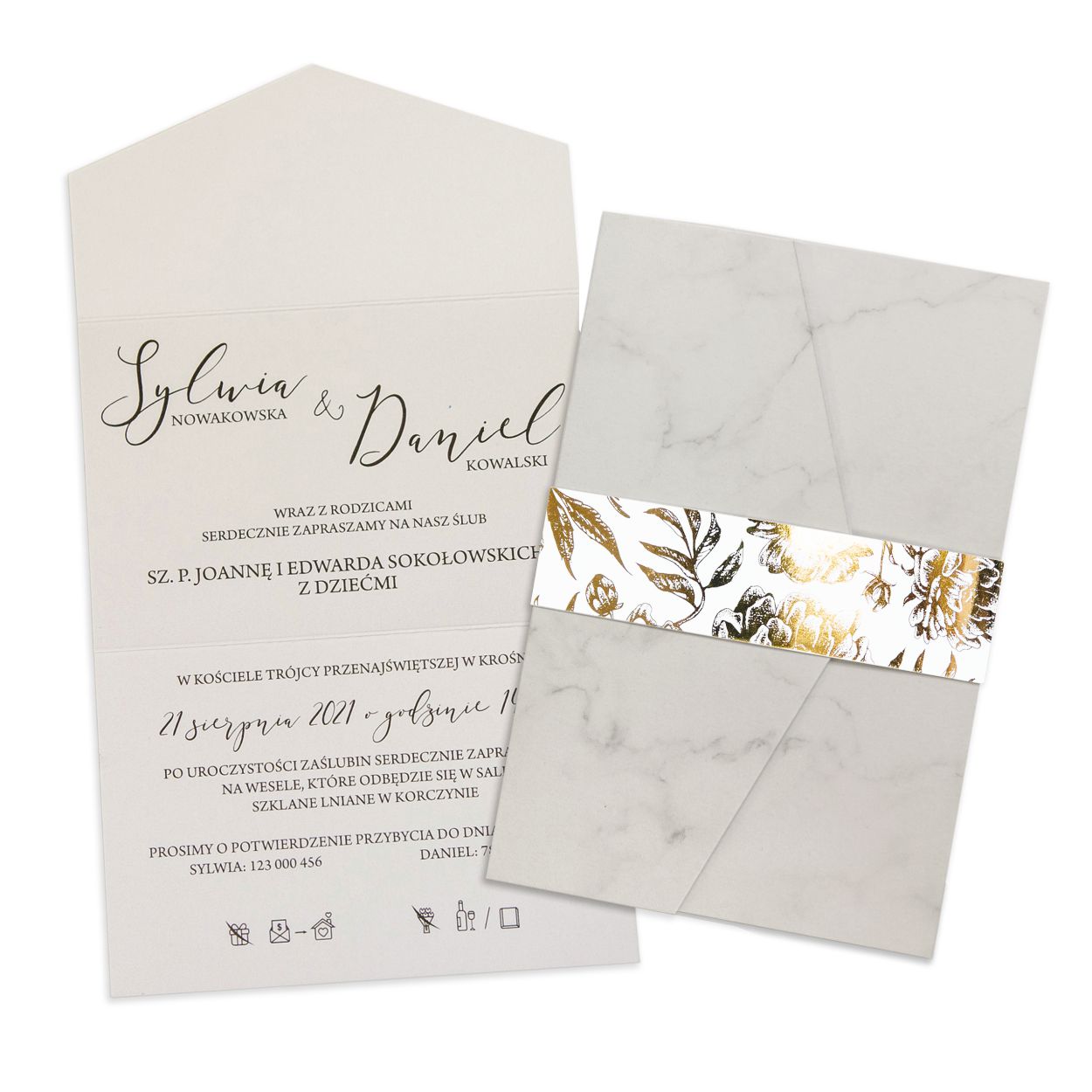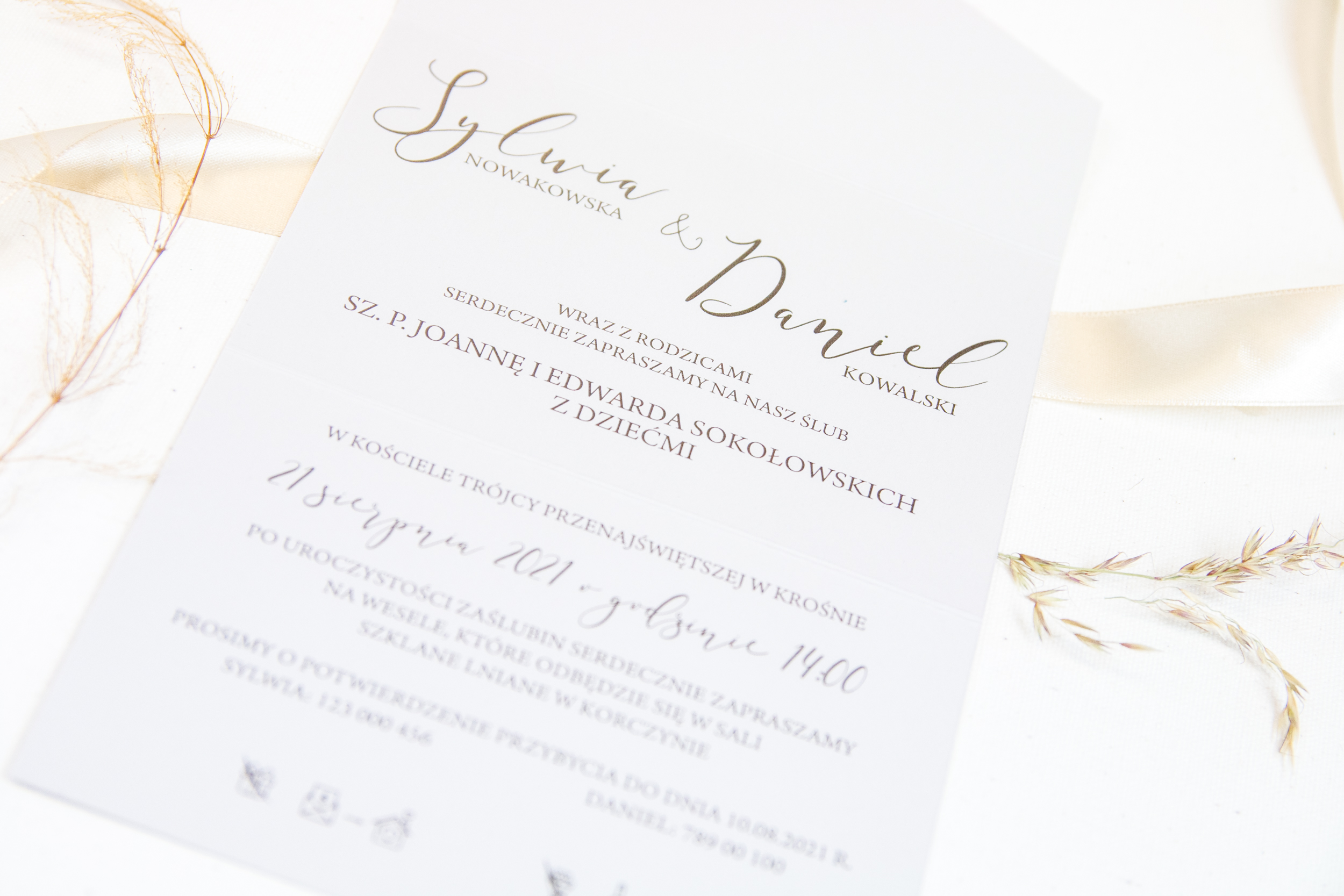 - zaproszenie rozłożone o wymiarach 29×15 cm po złożeniu o formacie 10×15 cm z wysokiej jakości papieru o dużej gramaturze