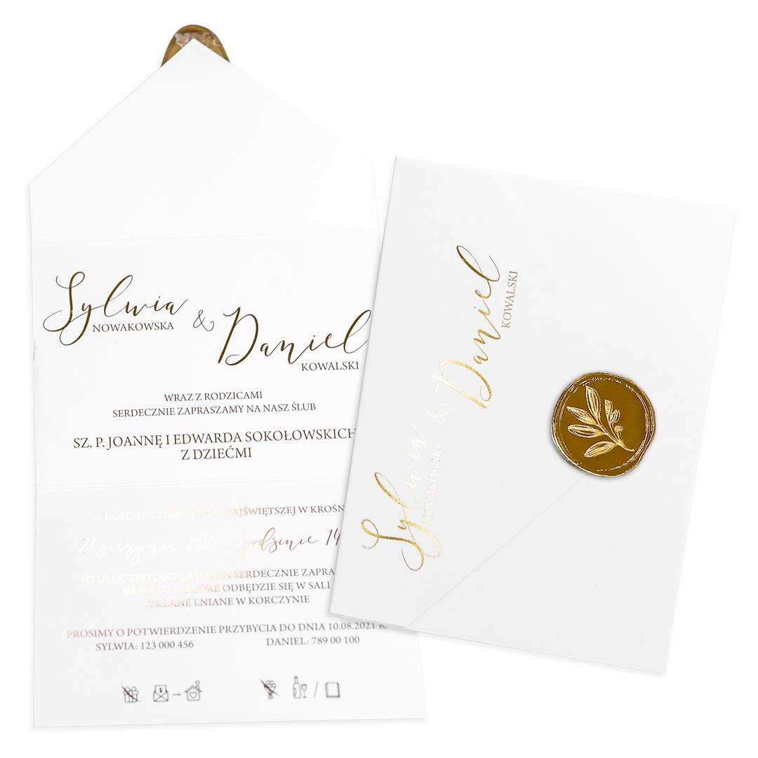 🎀 Stylowe wykończenie – do wyboru złoty lak lub złoty sznurek, które nadadzą zaproszeniom wyjątkowego charakteru.